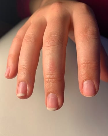 Hierbij gaan we dus de natuurlijke nagels verstevigen zonder extra lengte toe te voegen.